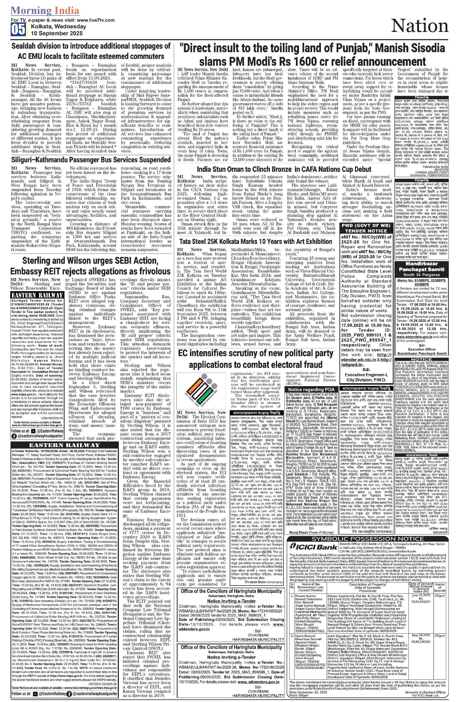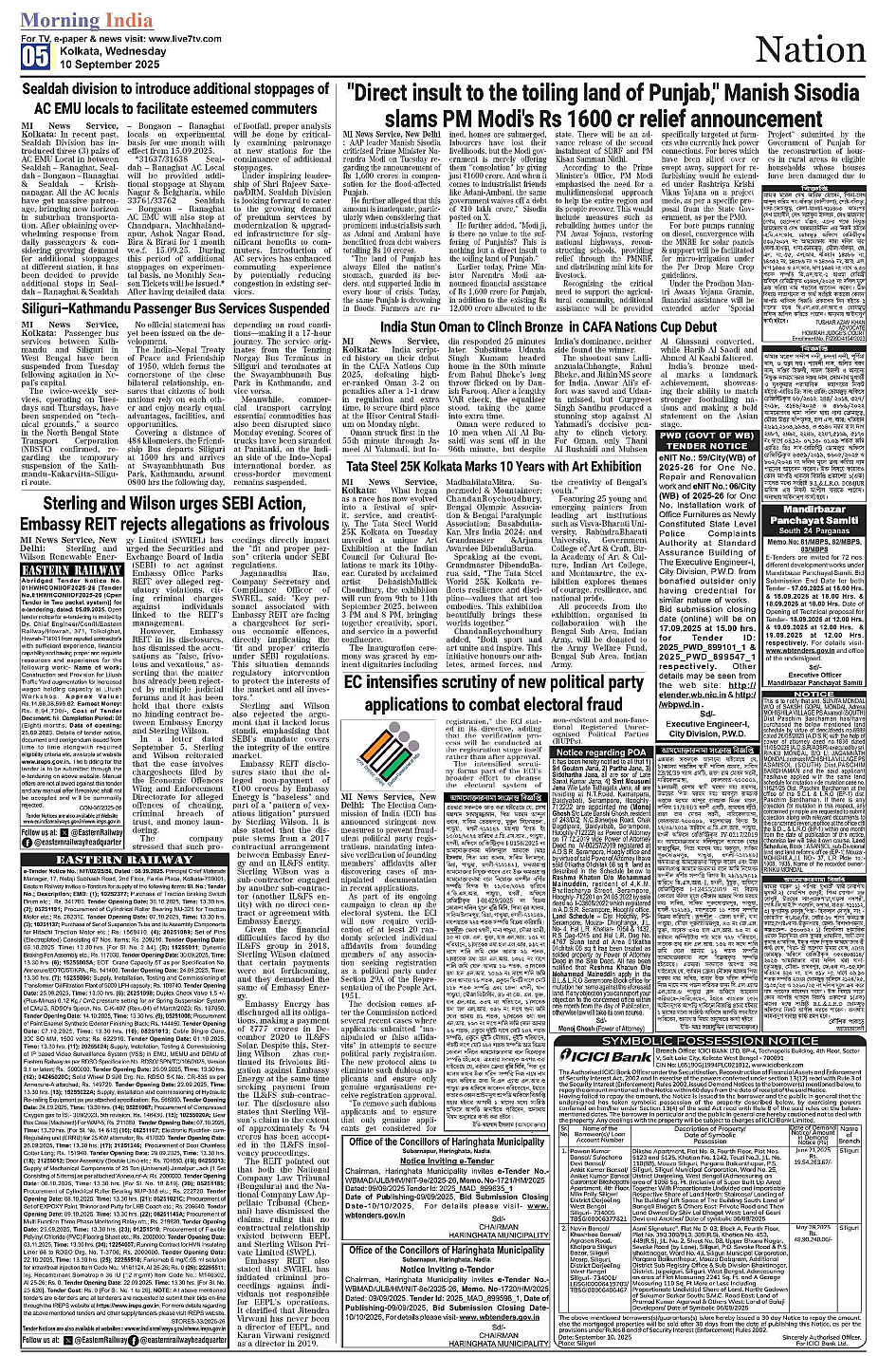 Morning India Kolkata Page: 5 September 10, 2025 Morning India Kolkata << First << 5 >> Last >> Page 1Page 2Page 3Page 4Page 5Page 6Page 7Page 8 × Morning India Kolkata MI Kolkata _10SepRevised_S1MI Kolkata _10SepRevised_S2MI Kolkata _10SepRevised_S3MI Kolkata _10SepRevised_S4MI Kolkata _10SepRevised_S5MI Kolkata _10SepRevised_S6MI Kolkata _10SepRevised_S7MI Kolkata _10SepRevised_S8 Full PDF << First << 5 >> Last >> MI Kolkata _10SepRevised_S1MI Kolkata _10SepRevised_S2MI Kolkata _10SepRevised_S3MI Kolkata _10SepRevised_S4MI Kolkata _10SepRevised_S5MI Kolkata _10SepRevised_S6MI Kolkata _10SepRevised_S7MI Kolkata _10SepRevised_S8 MI Kolkata _10SepRevised_S5